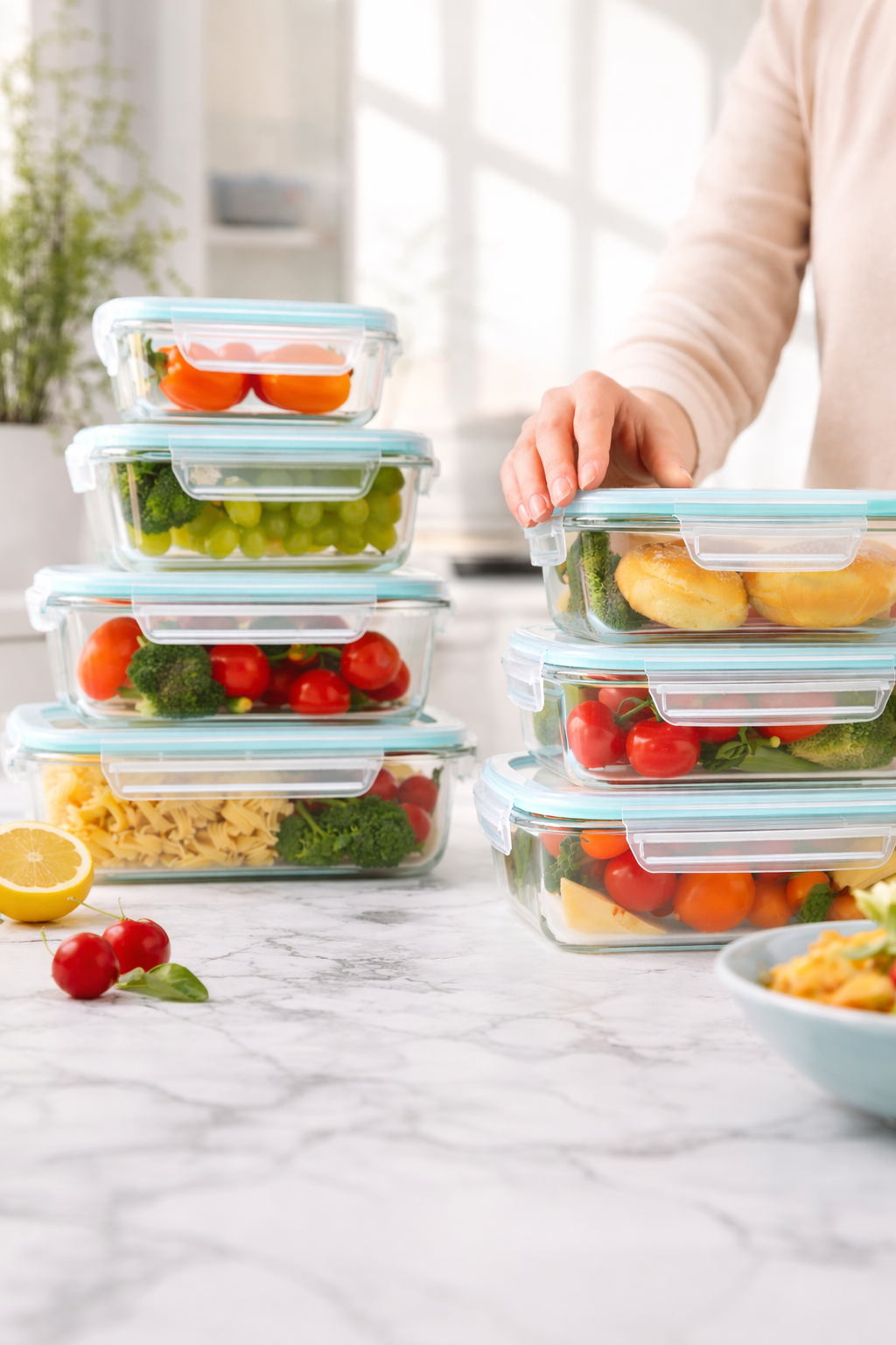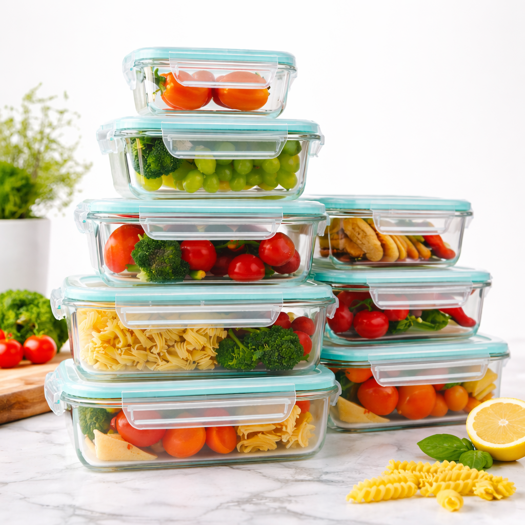 Keep your food fresh, visible, and perfectly organized. Our stackable glass containers help you store ingredients neatly while saving valuable space in your fridge and cabinets.